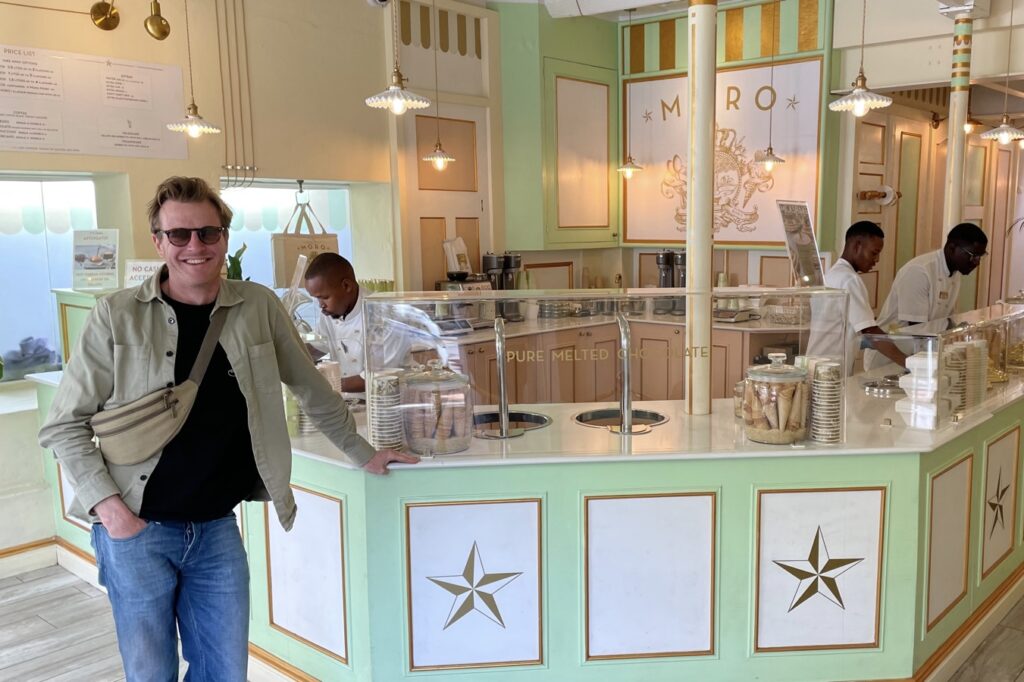 Vanaf het terras hadden we zicht op een ijswinkel aan de overkant. Liefhebber Ivo had al snel opgezocht dat dit zo ongeveer de beste ijsmaker van Stellenbosch was met een hoge ‘Tripadvisor-score’.